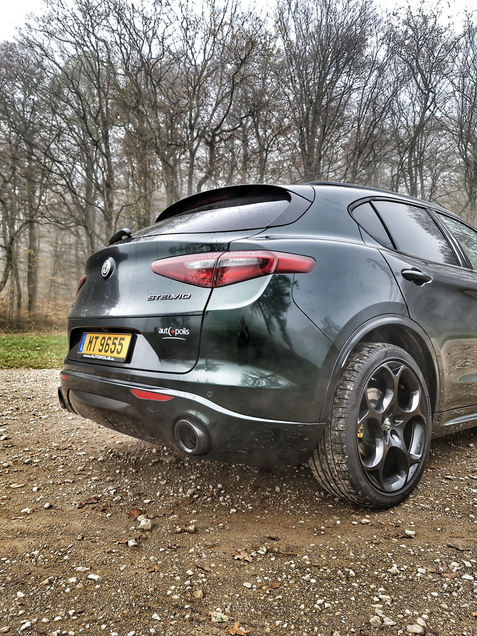 A l’arrière, la personnalité  SUV du Stelvio est soulignée par son design vigoureux.