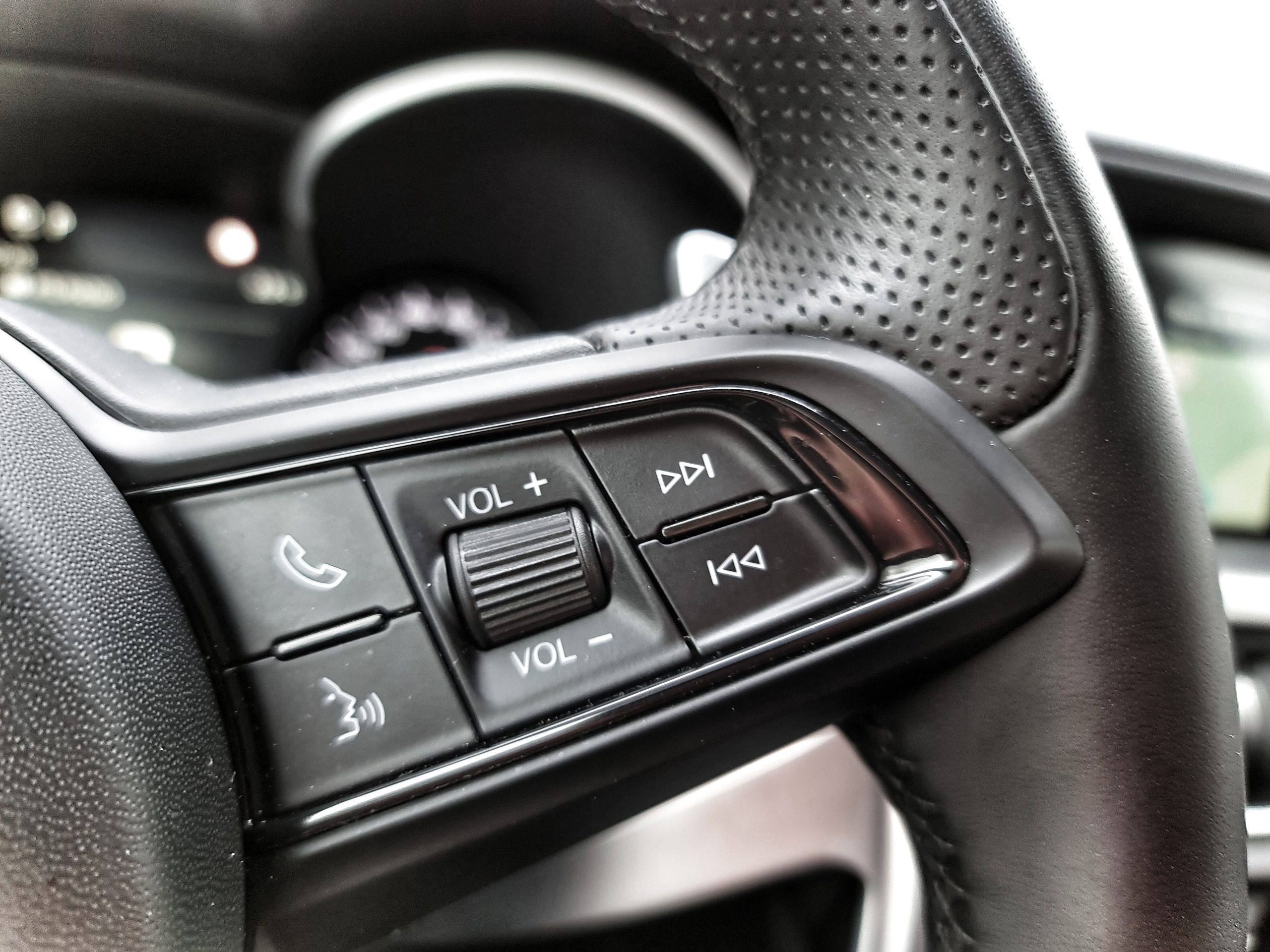 Le pavé rotatif du système multimédia facilite l’accès à la personnalisation de l’expérience d’infotainment. Je vous avoue que pour moi c’était un soulagement de le découvrir. Je n’aime pas trop interagir avec l’écran tactile pendant la conduite. J’utilise beaucoup les commandes sur le volant et, si c’est le cas, les contrôles de la console centrale. Il y a aussi un bouton rotatif qui permet de régler le volume.