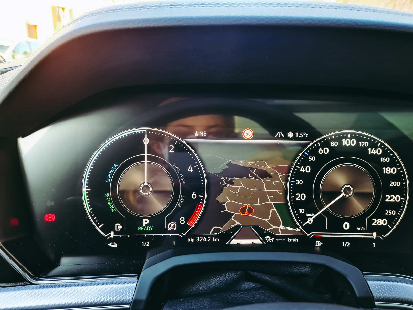 Lorsque la batterie est suffisamment chargée, le Touareg R démarre toujours en E-MODE électrique pour zéro émissions et c’est oui, c’est vrai, vous pouvez couvrir vos trajets quotidiens avec zéro émission ( autonomie d’environ 47 km WLTP). Je trouve cela fascinant.