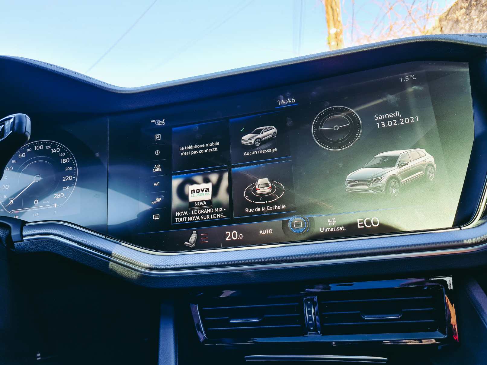 A l’intérieur, le luxe est au rendez-vous. On commencer par l’Innovision Cockpit, un grand ecran qui apporte une belle fluidité au design de l’habitacle: le Digital Cockpit de 12 pouces est associé à l’écran tactile TFT de 15 pouces.