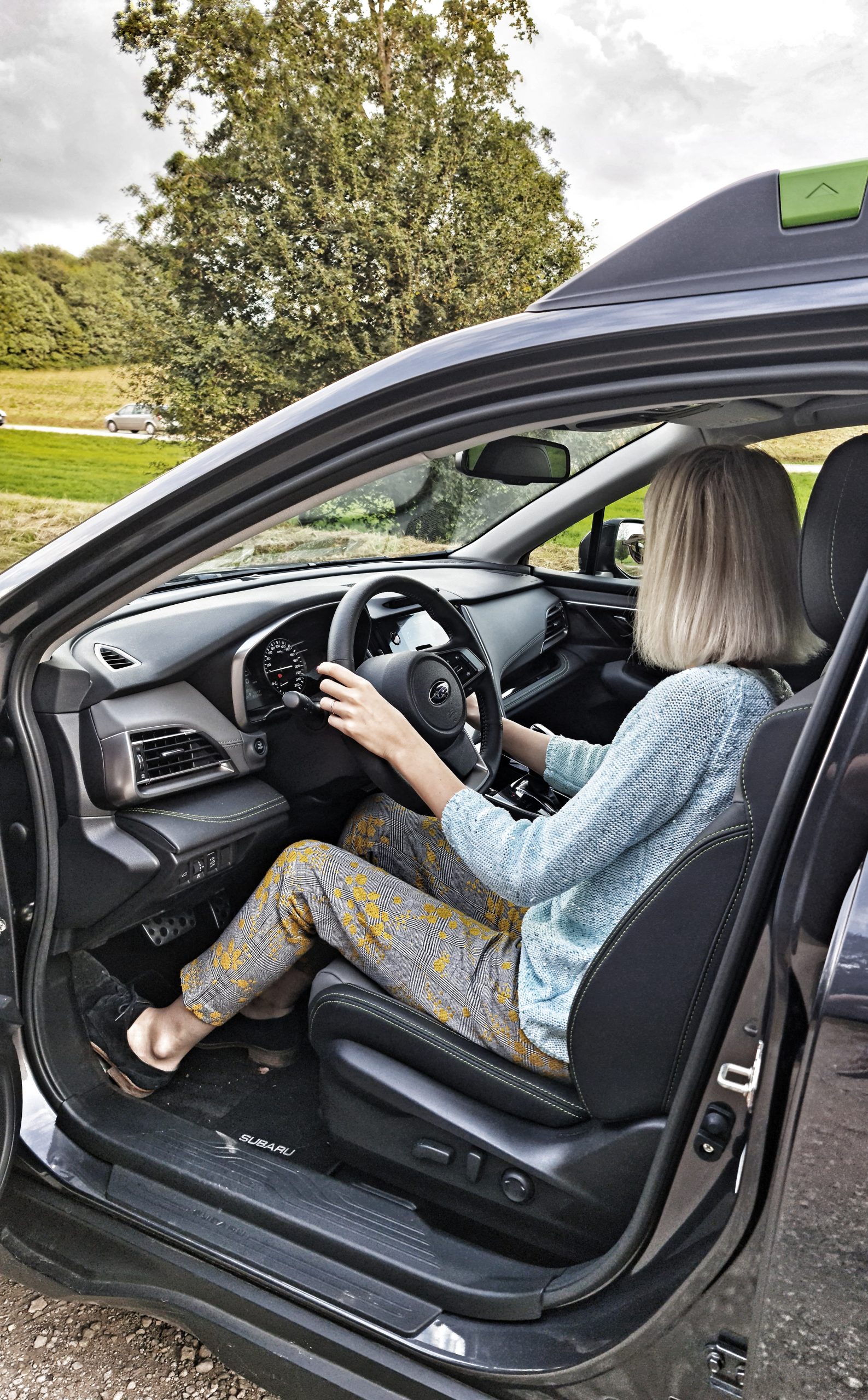 Dans l’habitacle j’ai trouvé une atmosphère aérée. La sixième génération de Subaru Outback est plus spacieuse que la génération précédente avec une distance centrale entre les sièges avant et arrière augmentée de + 10,8 mm, entre l’espace aux hanches avant des occupants gauche et droit de + 30 mm / espace aux épaules avant + 7 mm.