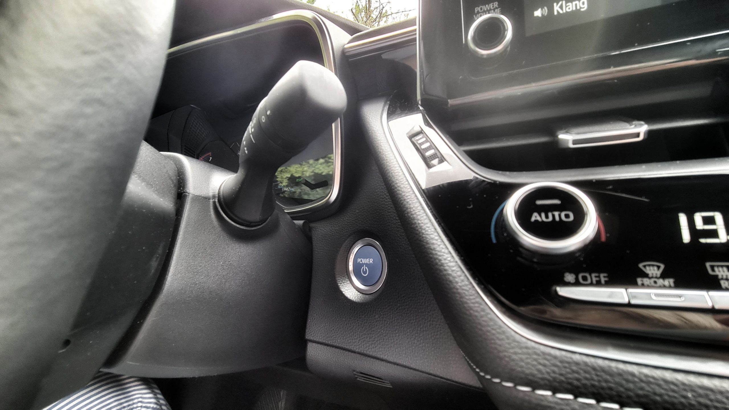 Sur la console centrale, on aperçoit un bouton qui vole la vedette: EV Mode. Vous l’avez peut-être déjà deviné, avec un simple geste d’appui vous passez en mode purement électrique, ce qui vous permet de rouler en silence, sans d’emissions dans des zones résidentielles, par example.