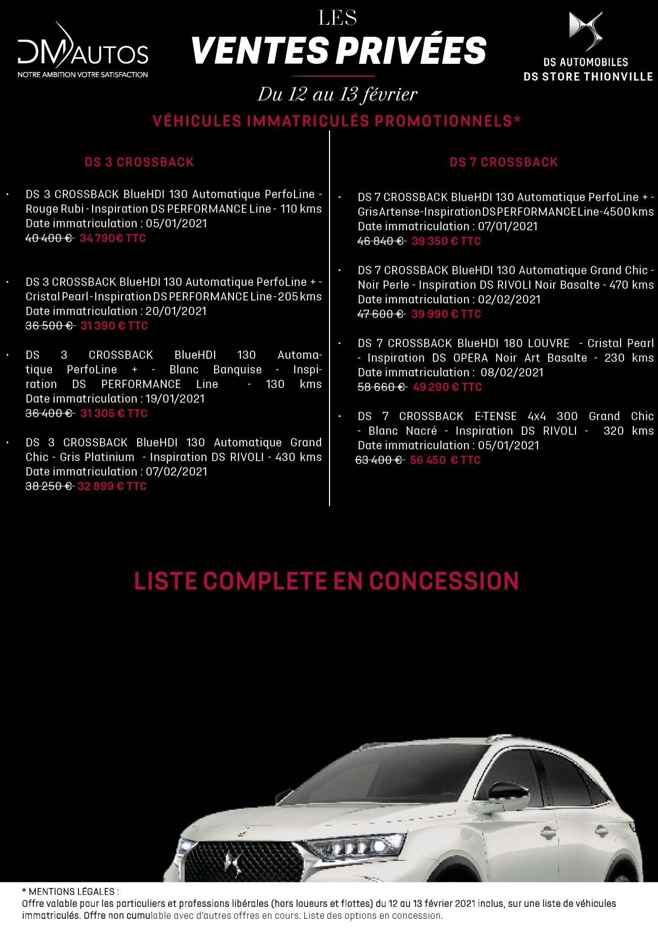 Pendant 2 jours, du 12 au13 février, profitez des offres à ne pas manquer sur véhicules neufs et d’occasion en stock avec jusqu’à 12 000 euros de remise immédiate!*
